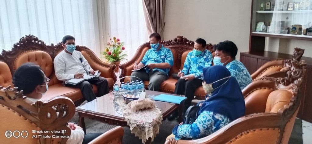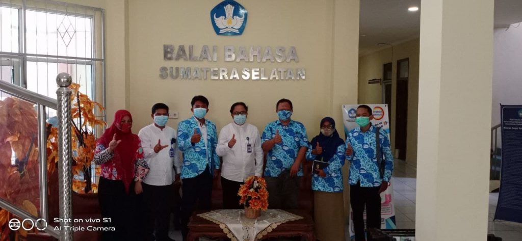 Kepala Balai Bahasa Provinsi Sumsel, Drs. Umar Solikhan, M.Hum didampingi Koordinator pembinaan Muhammad Irsan, M.Hum., serta Humas dan publikasi, Srividia Fika memberikan izin pemanfaatan Aula Balai Bahasa Sumsel untuk Kegiatan Ikatan Guru Indonesia (IGI) saat menerima audiensi Pengurus Wilayah IGI Sumsel, Senin (26/04).